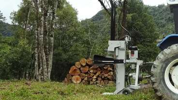 O Rachador de Lenha e Toras RTI-03 é ideal para operações que requerem mobilidade e flexibilidade, e pode ser acionado por trator ou motor elétrico.